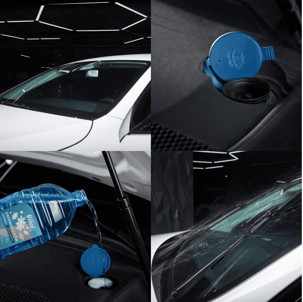 - Залийте омивач скла зимовий VITOL -22°C у бачок.
