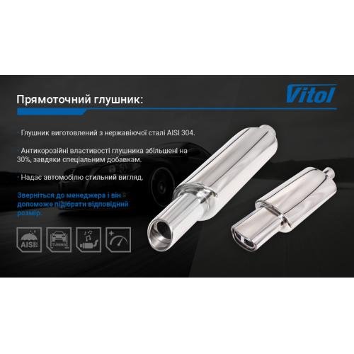 Прямоточний глушник VITOL НГ-0647, нержавіюча сталь, 63,5/88 мм