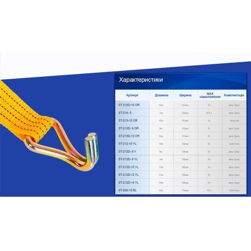 Ремінь стяжний 1т ST-214- 5 25мм х 5м