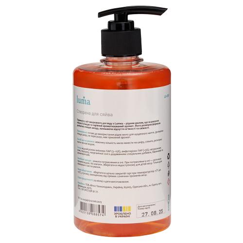 Рідке мило Luma дбайливо очищає шкіру, добре піниться та забезпечує приємні відчуття під час миття. Завдяки збалансованому pH воно підходить для щоденного використання, не пересушує і не подразнює шкіру. Ніжна текстура пінки створює відчуття м’якості та турботи.