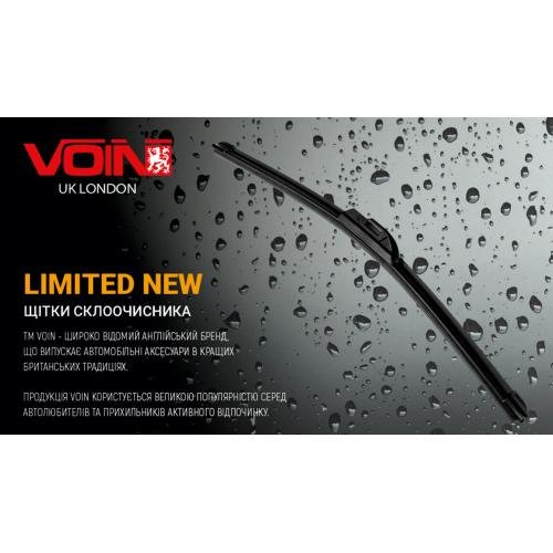 Двірники VOIN LIMITED поєднують еластичне каучукове лезо, нанографітове покриття та аеродинамічний профіль, що забезпечує стабільне очищення скла в умовах інтенсивного руху. Посилене металеве кріплення з антикорозійним захистом підвищує надійність щітки під час щоденного використання.