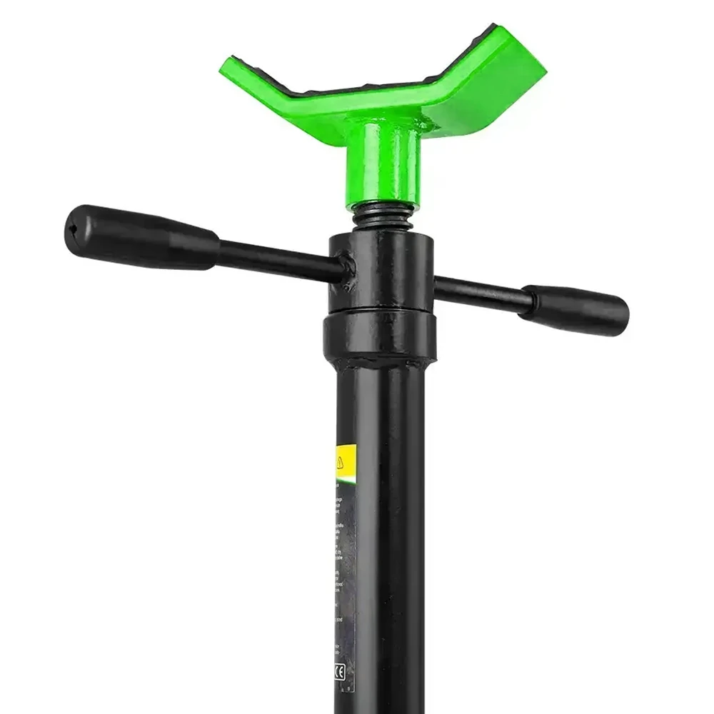 Стійка оснащена ножним приводом, який дозволяє створювати коливальні рухи підвіски. Завдяки цьому майстер може одночасно спостерігати за поведінкою елементів і перевіряти їх на наявність люфтів. Регулювання по висоті дає можливість адаптувати інструмент під різні типи автомобілів і умови роботи.