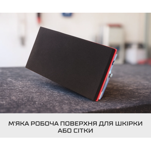 Легка вага корпусу дозволяє працювати довше без втоми. Ергономічна ручка забезпечує комфортний хват та точність рухів. Металеві зажими утримують абразив щільно, не допускаючи зсувів. Завдяки універсальному формату 105×210 мм тёрка ідеально сумісна з більшістю сіток і наждачних листів.
