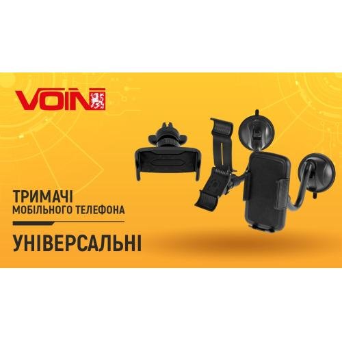 Універсальний автомобільний тримач від VOIN чудово підійде для вашого смартфона та невеликого планшета. Аксесуар кріпиться на вакуумну присоску до лобового скла або передньої панелі автомобіля. Тримач дозволяє закріпити телефон у горизонтальному або вертикальному положенні, забезпечуючи максимальну зручність.