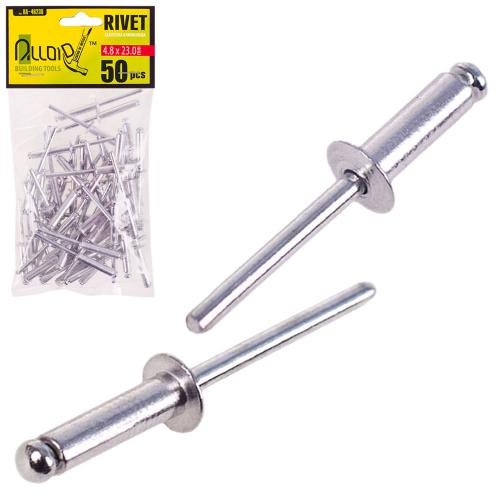 У комплекті 50 алюмінієвих заклепок Alloid 4,8 x 23,0 мм.