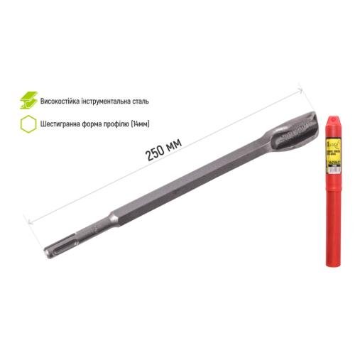 Зубило для бетону канавочне SDS-plus 14×250х22мм призначене для використання з перфораторами та відбійними молотками з патроном SDS-Plus з блокуванням обертання.